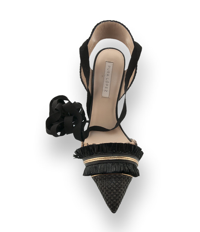 Pura Lopez Schuhe sling in schwarz mit gold Fransen zum Binden