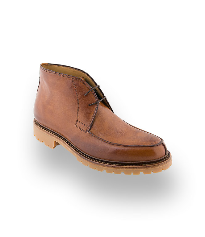 Business-Stiefeletten von Quarvif aus cognacfarbenen Kalbsleder in softer Prägung setzen frische Akzente.