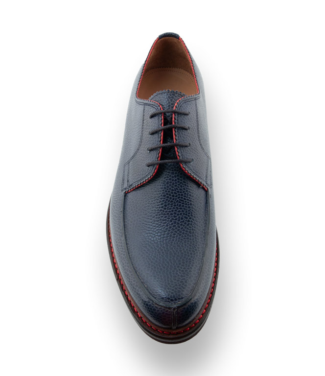 Dunkelblauer Norweger aus Kalbsleder von Quarvif ist ein stilsicherer Begleiter für höchste Ansprüche. Die rahmengenähten Schuhe bekommen durch die roten Nähte einen sportlichen Charakter. Lederfutter und eine Gummisohle mit Profil sorgen für besten Tragekomfort. Die Schnürschuhe sind modisch und zeitlos zugleich. Quarvif für Männer mit hohen Ansprüchen. Der klassische Norweger mal ein wenig modischer in einem klassischem blau mit roten Nähten. Quarvif - Rahmengenähte Schuhe aus Meisterhand. Quarvif steht für hochwertige Arbeit.