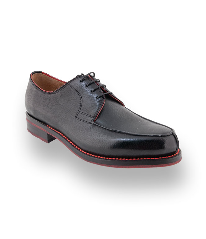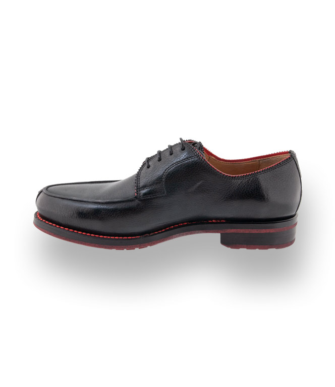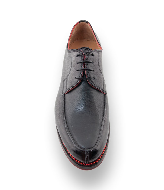 Schwarzer Norweger aus Kalbsleder von Quarvif ist ein stilsicherer Begleiter für höchste Ansprüche. Die rahmengenähten Schuhe bekommen durch die roten Nähte einen sportlichen Charakter. Lederfutter und eine Gummisohle sorgen für besten Tragekomfort. Die Schnürschuhe sind modisch und zeitlos zugleich. Quarvif für Männer mit hohen Ansprüchen. Der klassische Norweger mal ein wenig modischer in schwarz mit roten Nähten. Quarvif - Rahmengenähte Schuhe aus Meisterhand. Quarvif steht für hochwertige Arbeit.