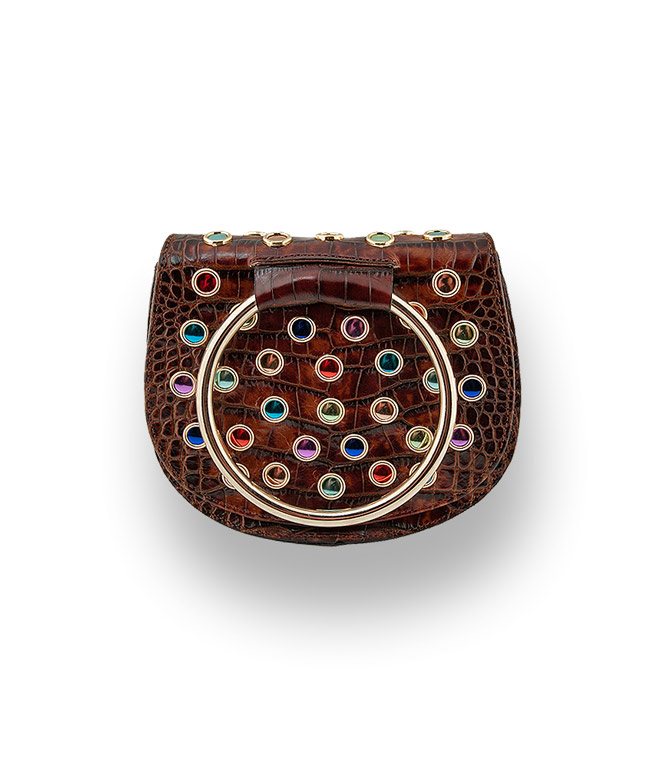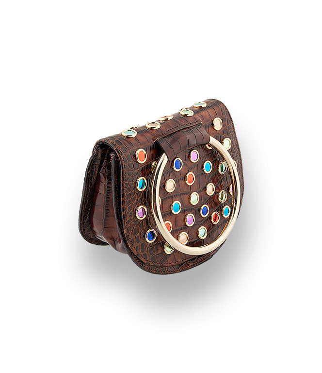 Damenhandtasche von RAS Krokoprägung mit bunten Glassteinen
