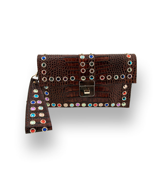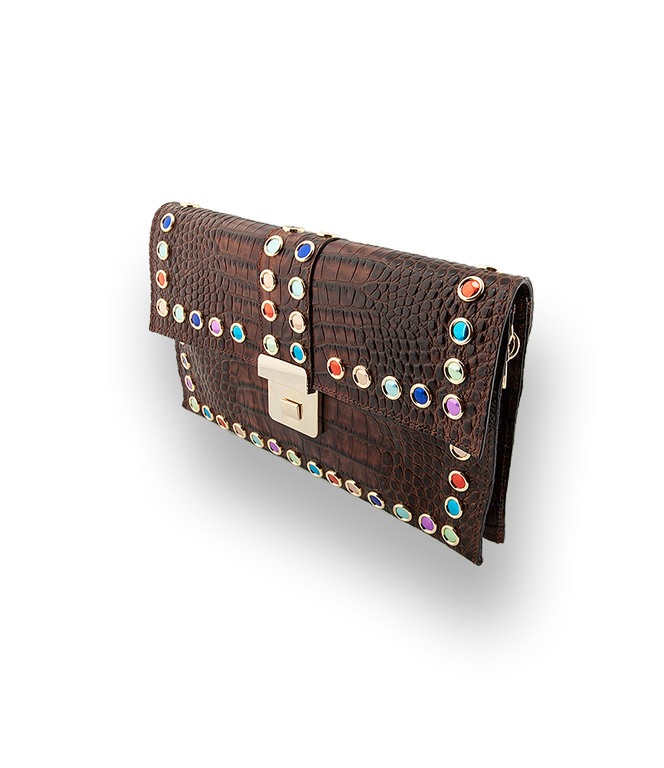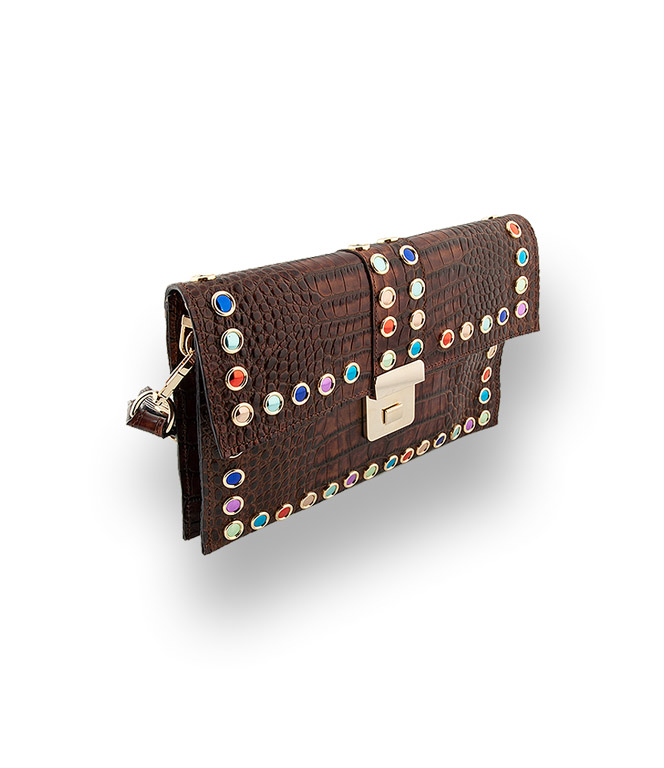 Damenhandtasche von RAS Krokoprägung mit bunten Glassteinen