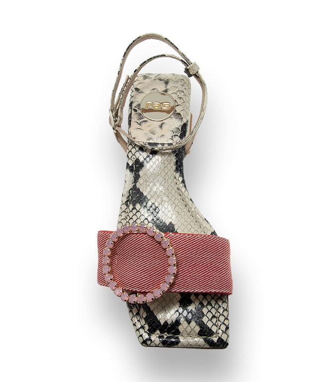 RAS Sandale in rot Denim mit ausgefallener Brosche