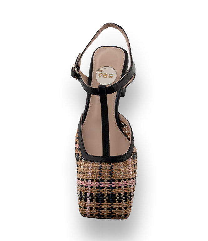 Kreativer Mode-Mix mit coolen Ecken und Kanten. Der Slingback von RAS wird zum Eyecatcher. Extrem breite Karreeform und ein ausgefallener Kunststoffabsatz in einer angenehmen Höhe von 5cm muss in den Schuhschrank. Flechtung aus Leder und Bast steht im Fokus und sorgt für einen ansprechenden Farbmix der sich nicht aufdrängt. T-Spange - ein schickes Modestatement, dass einen perfekten Halt bietet.
