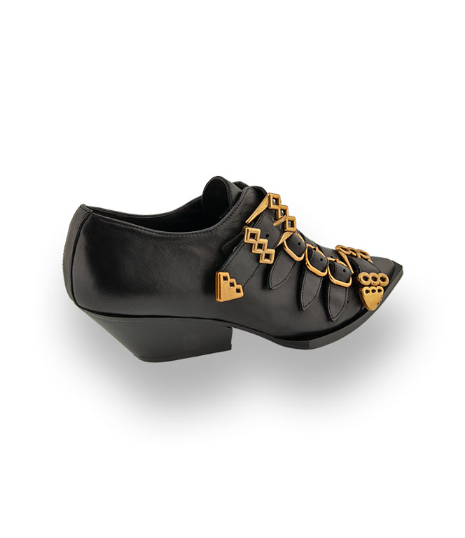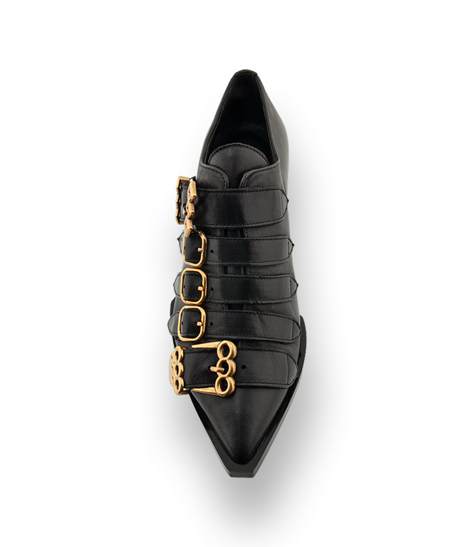 RAS Schuhe - schwarzer Slipper mit goldfarbenen Schnallen