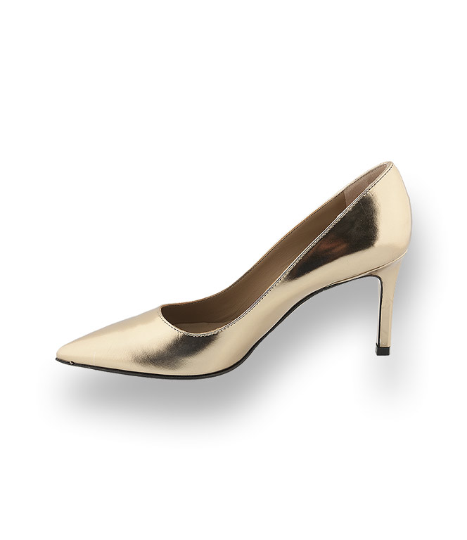 Hochelegant mit einem 8cm hohen Stilettoabsatz wird dieser goldfarbene Pumps von Roberto Festa in Metallicleder zum einzigartigen Begleiter und sorgt für einen stilvollen Auftritt. Hochwertige Materialien, Lederfutter und Lederlaufsohle garantieren einen perfekten Tragekomfort. Die schlichten und wunderschönen Pumps von Roberto Festa bringen ihre Augen zum Leuchten und setzen ihre Garderobe ins Rampenlicht.