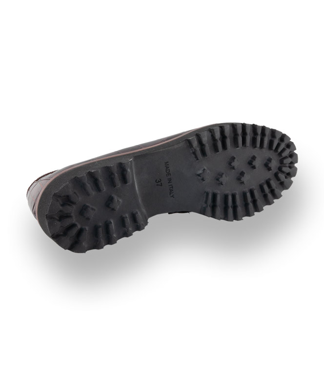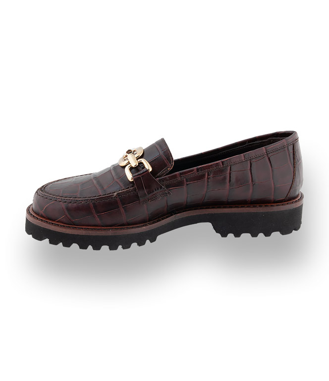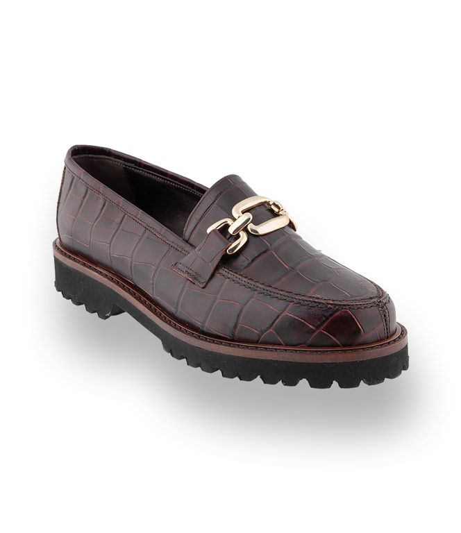 College-Look der 70er Jahre dominiert den Streetstyle. Ein begehrter Kombipartner von Ruffino zeigt sich im braunem Glattleder, auf Krokobasis geprägt mit Metallspange. Eine sehr leichte Microsohle und ein hochwertiges Lederfutter sorgen für den entsprechenden Komfort. Loafer stehen hoch im Kurs und sind angesagte Stilmittel für Büro und Freizeit.