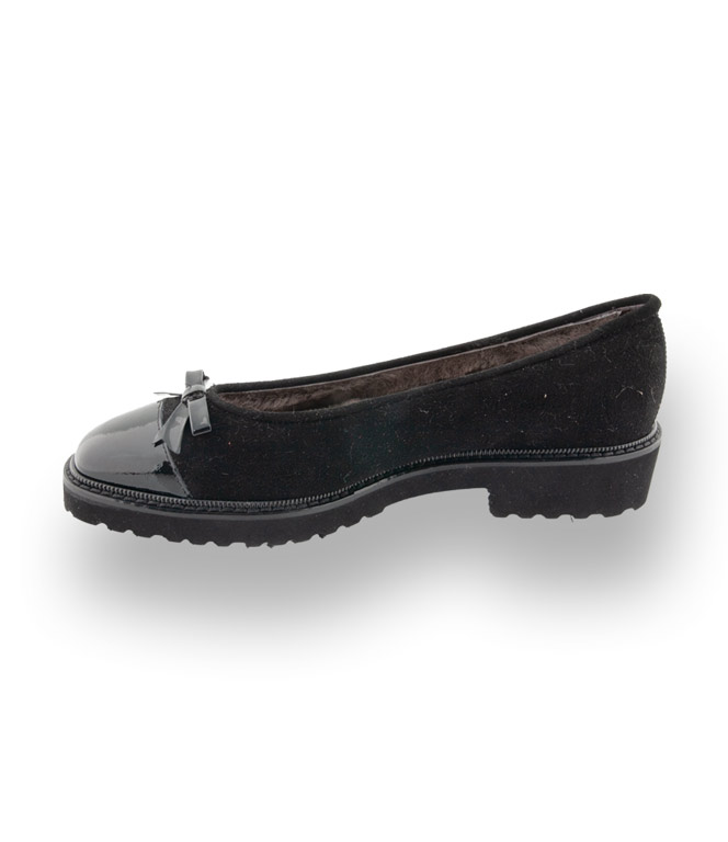 Ruffino Ballerina in schwarz mit Lackkappe und mit Lammfellfutter