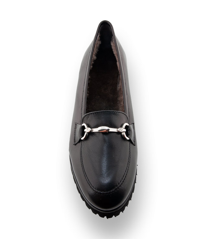 Ruffino Loafer in schwarz mit Lammfellfutter und Metallspange