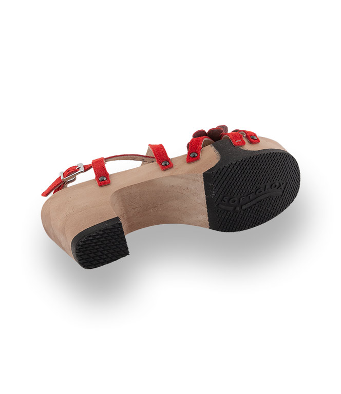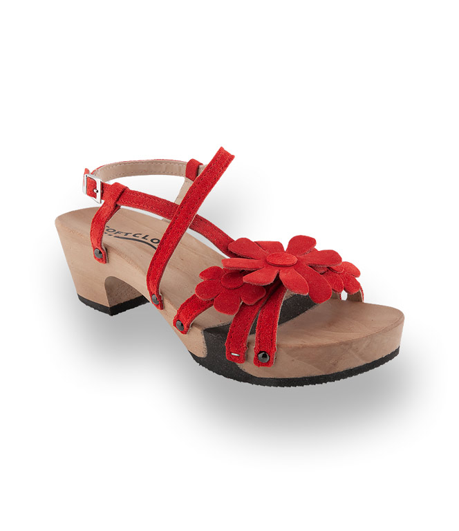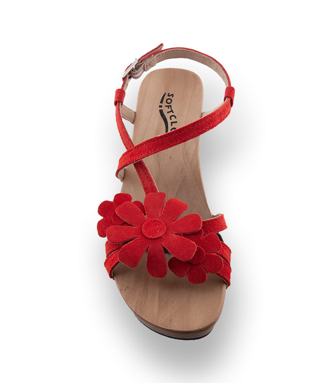 Softclox, Modell Kascha Holzclogs Sandalette rot mit Blumen