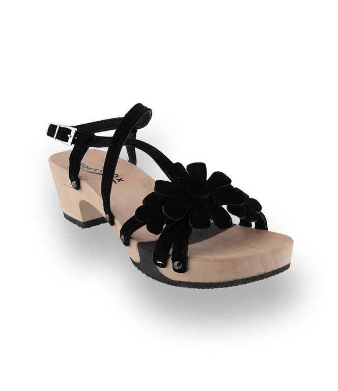 Softclox, Modell Kascha Holzclogs Sandalette schwarz mit Blumen