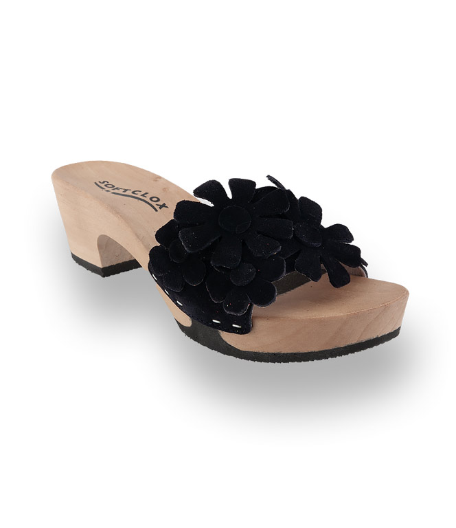 Softclox, Modell Kora Holzclogs Pantolette blau mit Blumen