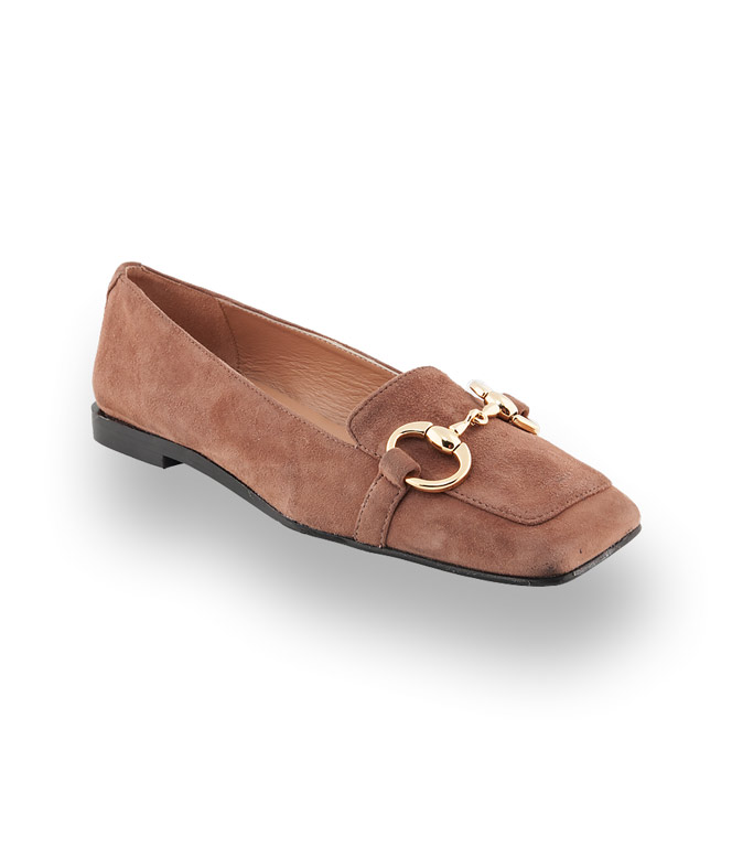 Status Loafer in beige velours, Karreeleisten mit Metallspange