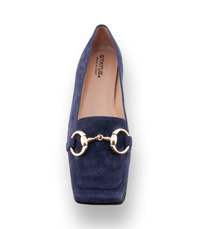 Für frischen Wind im Retro-Style sorgt der lässige blaue Loafer von Status. Breites Karree, weiches blaues Veloursleder und die dekorative Metallspange begeistern und finden überall ihren Einsatz. Durch die Gummilaufsohle sind sie auch für regnerische Tage bestens gerüstet. Ein Allrounder der jedes Outfit peppt.