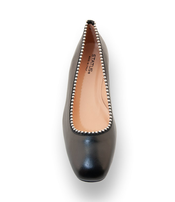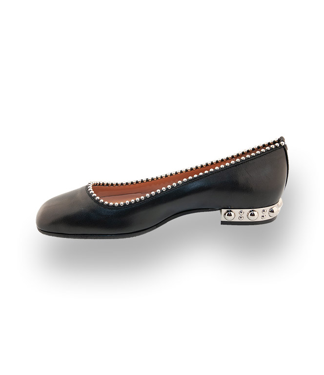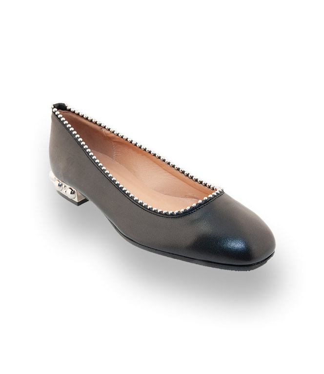 Mit diesem eleganten, schwarzen Balleina kommen sie überall gut an und Komplimente sind ihnen sicher. Obermaterial und Futter sind aus weichem Kalbsleder gefertigt. Der runde Leisten sitzt wie angegossen. Die Einfassung aus winzigen, silberfarbenen Perlen und der auffällige, unempfindliche Absatz mit kleinen Halbkugeln, machen den Ballerina zu einem modischen Highlight. Die Gummilaufsohle bietet Schutz vor Nässe. Nicht nur für's Büro sondern auch zum kleinen Schwarzen die perfekte Ergänzung. Lassen sie sich verzaubern.