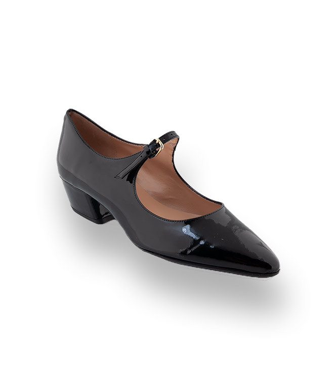 Lackleder und Lederfutter umschmeicheln den Fuß. Der 3 cm hohe, leicht unterstellte Absatz unterstreicht den eleganten Look. Der Flamenco lässt grüßen. Die optimale Ergänzung zum verspielten Kleid oder Plisseerock.