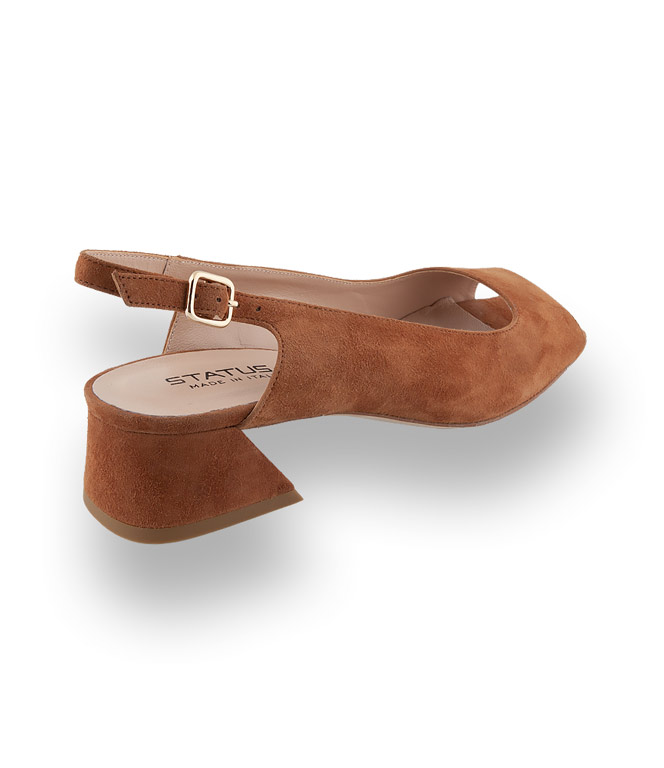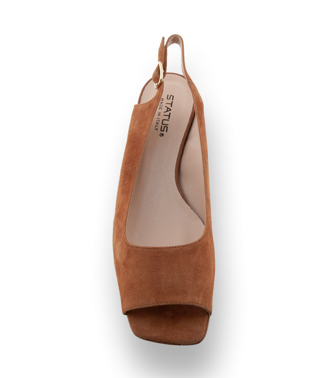 Die klassisch braune Sandalette von Status umschmeichelt ihren Fuß und sitzt wie angegossen.
