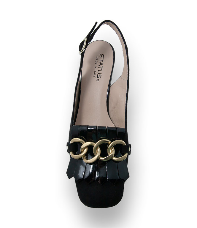 Halbhoher, schwarzer Slingpumps von Status für den Alltagsglamour.