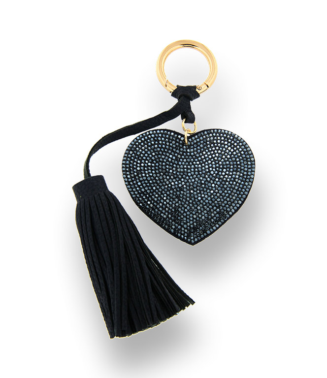 Glitzender Schlüsselanhänger in blau mit Glitterherzen und einer Quaste von Sweet Deluxe.