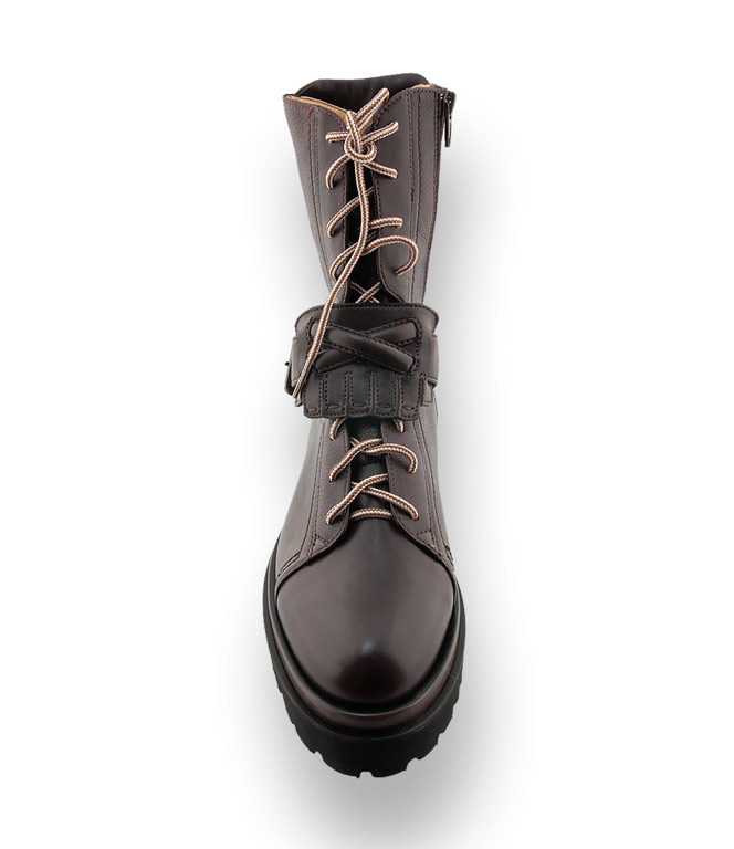 Die dunkelbraunen Booties von Trumans aus edlem Kalbsleder sind mit hochwertigem Leder gefüttert und in bester Verarbeitung in Italien gefertigt. Hohe Handwerkskunst und im sensationellen Design für junge Rebellinnen. Schnürung, Lederriemen, Schnalle sind höchst wirkungsvoll. Ein Reißverschluss sorgt für einen schnellen Einstieg.