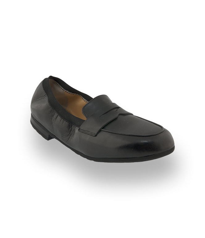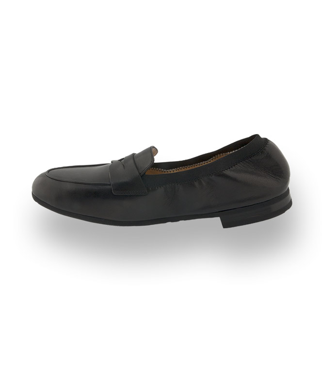 Loafer von TRUMANS sind außergewöhnlich geschmeidig und tragen sich wie eine zweite Haut. Aus schwarzem Ziegen-Nappa in Sacchetto Machart d.h. Lederinnenfutter wird mit dem Oberleder vernäht und somit gewinnt der Schuh höchste Flexibilität und ist unglaublich anschmiegsam. Eine Gummilaufsohle und ein elastisches Gummiband rund um den Ausschnitt verstärken den Komfort. Clean Chic für höchste Ansprüche.