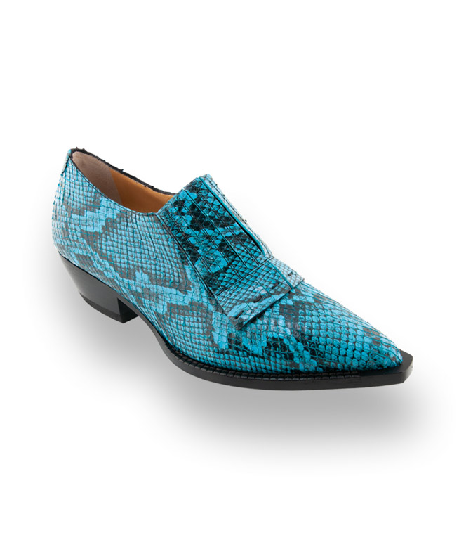 Türkisfarbener Loafer von TRUMANS im Westernstil, Schlangenprägung