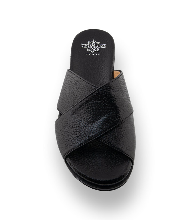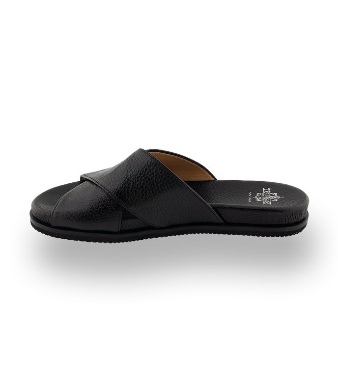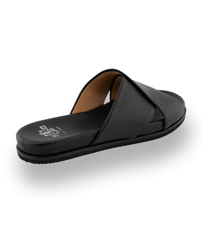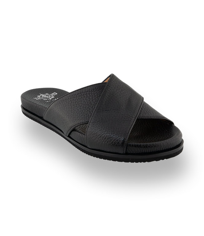 Schwarze Slides von Trumans sind unschlagbar bequem und perfekte Begleiter für lässige Styles. Ein Multitalent zu überlangen Hosen und Kleidern und besonders schick zu Bermudas. Kreuzbandage aus genarbtem Leder, eine flexible Gummilaufsohle und ein hochwertiges Lederfußbett versprechen besten Komfort. Ein sportliches Stilmittel dass ihre Sommergarderobe peppt. Lassen Sie sich überzeugen von der Qualität und Bequemlichkeit.