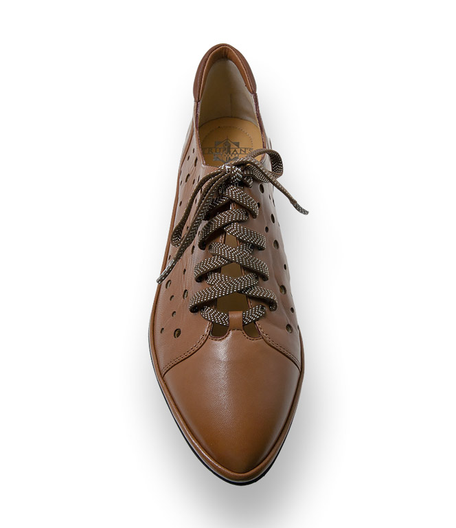 Brauner Schnürer von Trumans unterstützt durch sommerliche Leichtigkeit höchst komfortabel ihren Business Alltag. Spitzer Leisten, traumhaft weiches Ziegennappa und vorallem durch die faszinierenden Sacchetto Machart wird dieses Modell zu einem begehrten Wohlfühlaccessoire. Eine besonders leichte Microsohle, exclusives Lederfutter und durchgestanzte Löcher ergänzen den sagenhaften Komfort.