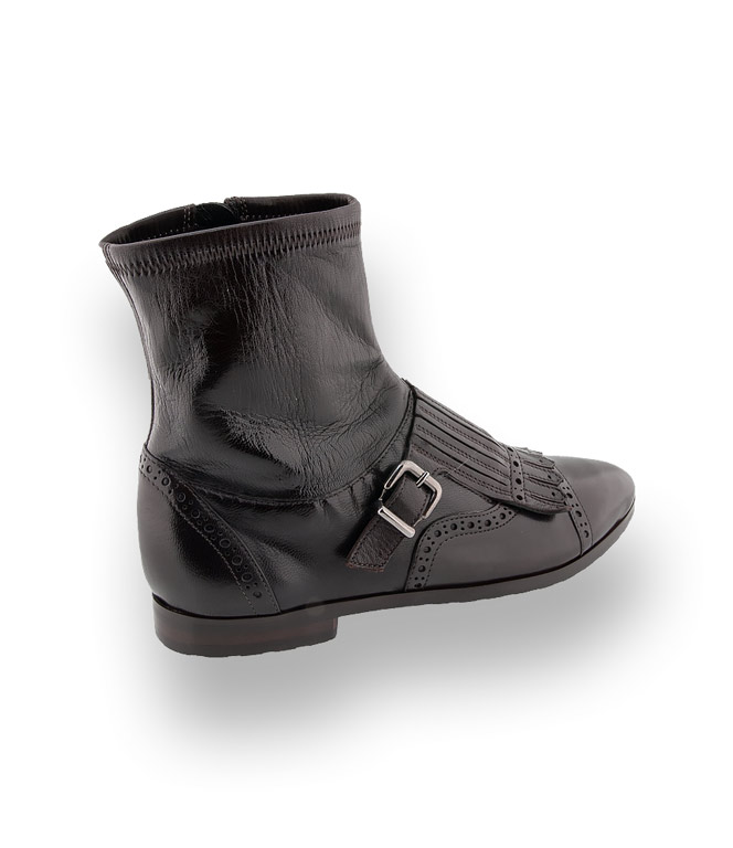 Dunkelbraune Stiefelette mit Fransen und Schnalle werden zum Lieblingsbegleiter ihres neuen Streetstyles.