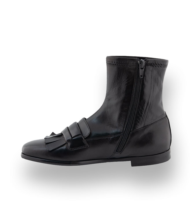 Stiefelette von TRUMANS in schwarz, Fransenlasche und Karreleisten