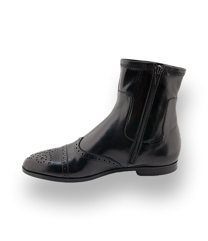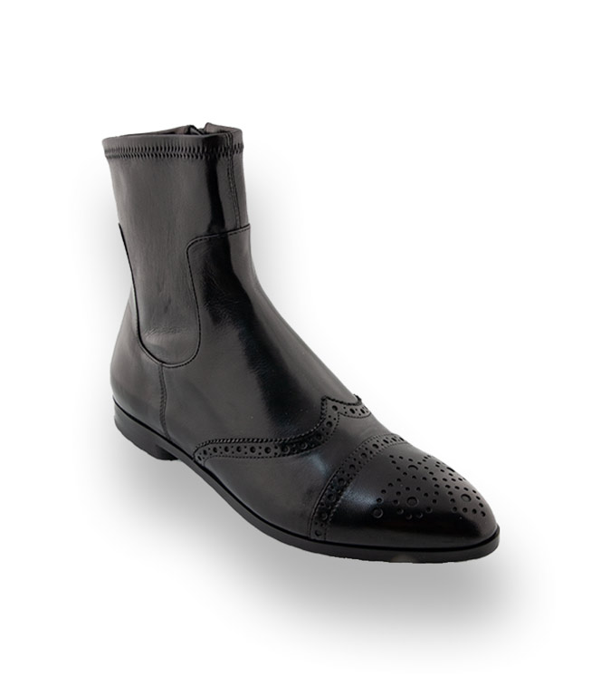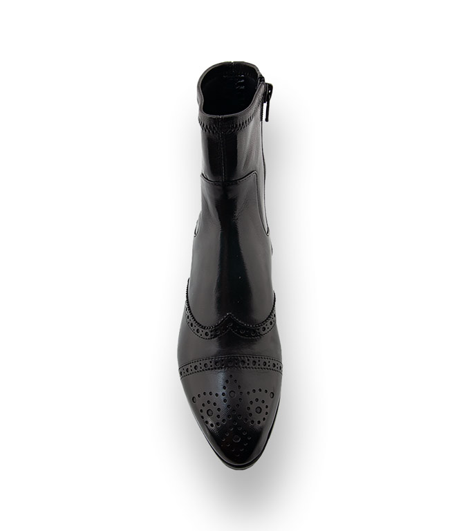 Blazer, Hosenanzug und die kostbar weichen Stiefeletten von Trumans. Schwarzes Ziegennappa, klassische Lochlyra und ein Stretchschaft mit Reißverschluss für den bequemen Einstieg. Tradition und Handwerk zeichnet einen Bootie von dem italienischen Label TRUMANS aus. Durch die wertvolle Sacchetto-Machart wird die Stiefelette zum Wohlfühlerlebnis. Lederfutter und eine flexible Gummilaufsohle erhöhen den Tragekomfort. Wellness für ihre Füße steht auf der Fashionliste.