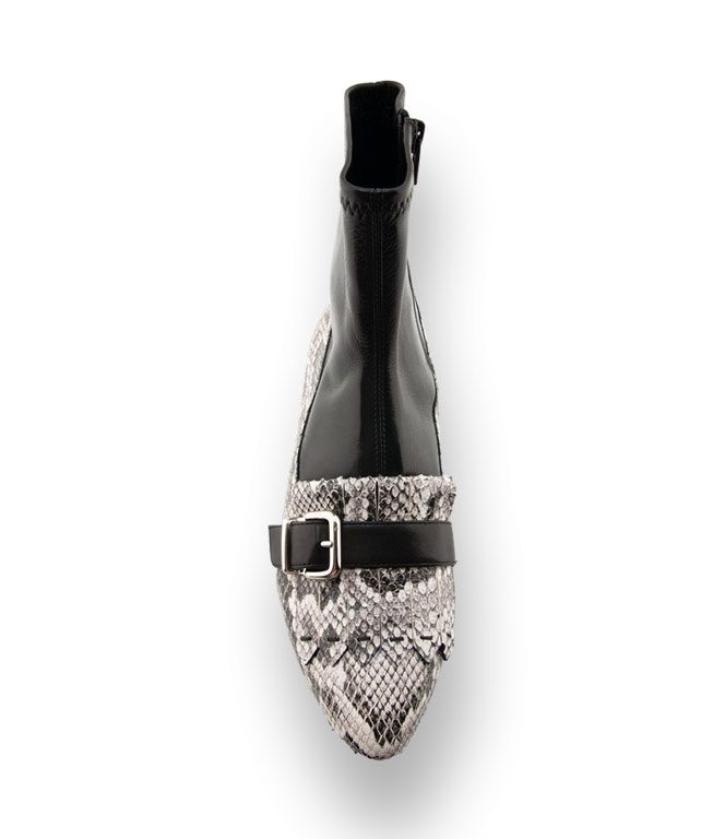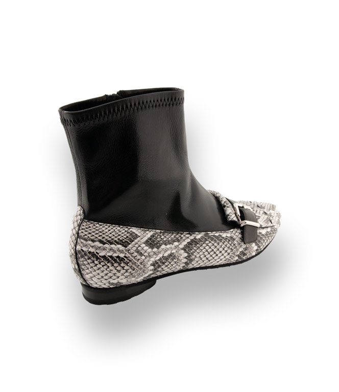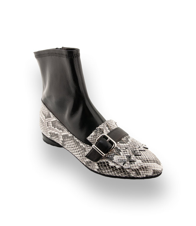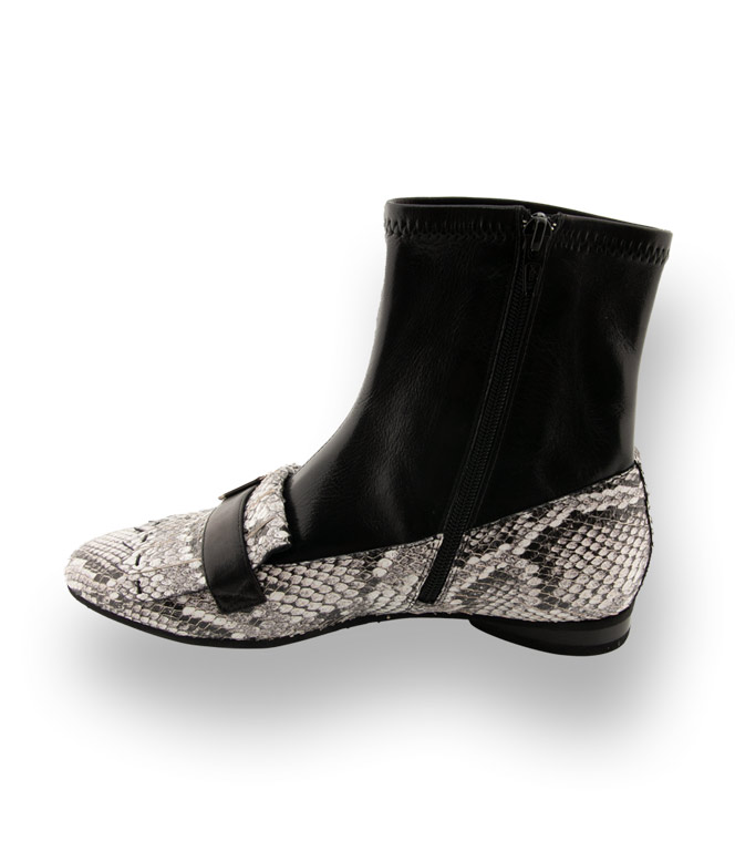 Stiefelette von TRUMANS in schwarz weiß Schlangenprägung und Fransenlasche