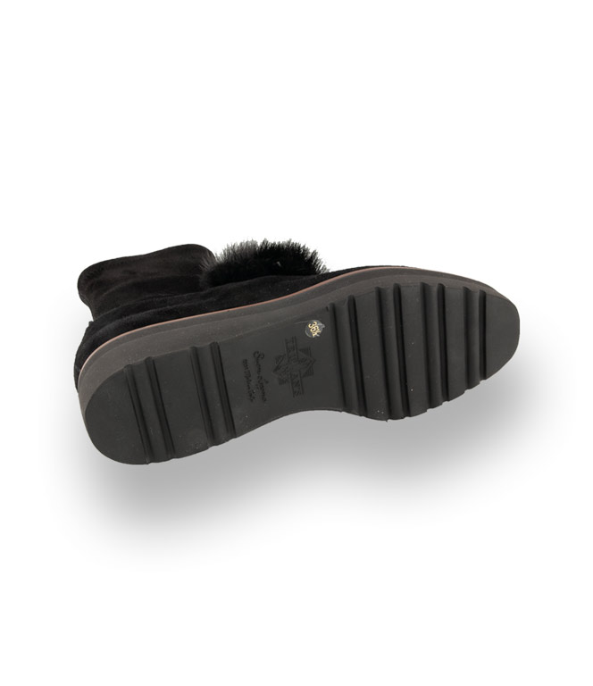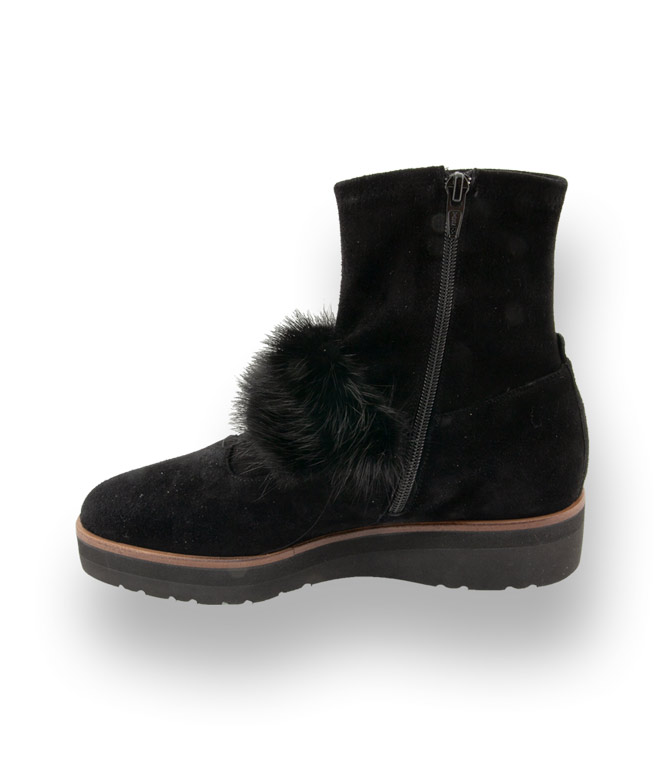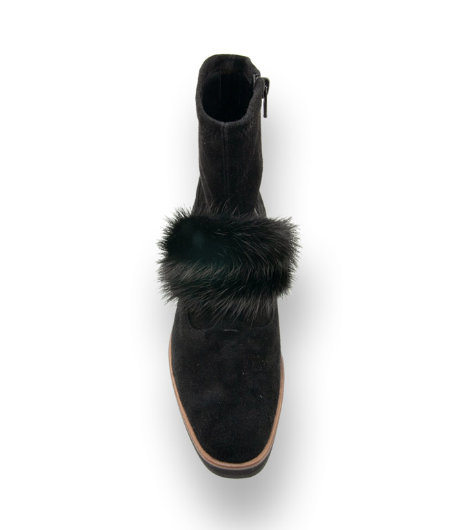 Stiefelette von TRUMANS in schwarz velours mit Fellschmuck