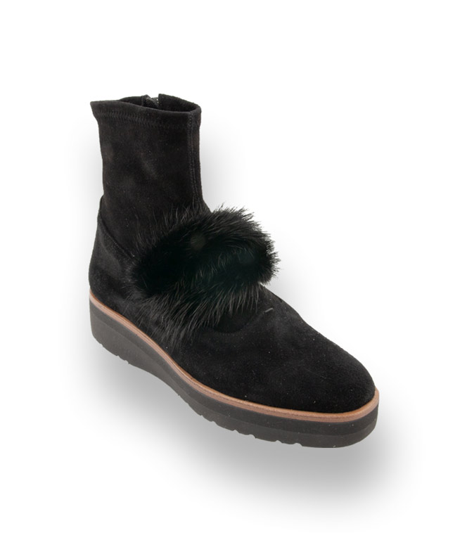 Super leicht, weich und besonders anschmiegsam trägt sich der neue Bootie von Trumans. Ein modisches Highlight ist der dekorative Fellbesatz am Rist und verleiht der Stiefelette einen femininen Touch. Durch hochwertiges Veloursleder, traumhaft angenehmer Stretch-Schaft, ein Reißverschluss für den schnellen Einstieg und in Sacchetto Machart, werden Sie auf höchstem Niveau verwöhnt. Dies bedeutet, dass Lederinnenfutter wird mit dem Oberleder vernäht und dadurch gewinnt die Stiefelette an Flexibilität.