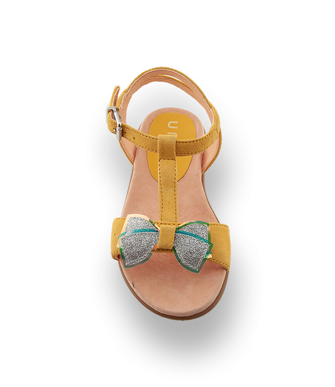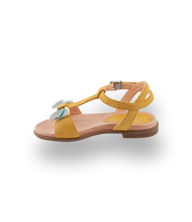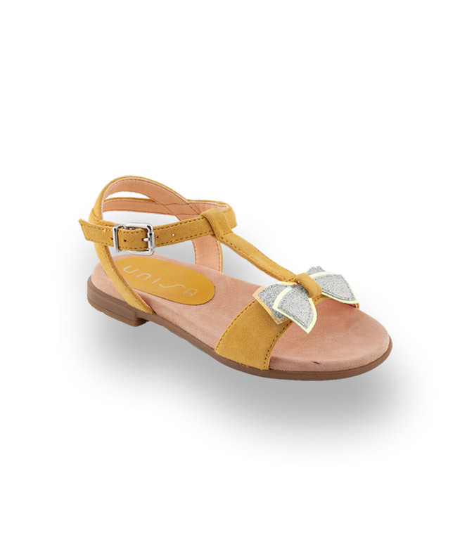 Unisa Kinderschuhe Sandale Modell Laso gelb velours mit Schleife