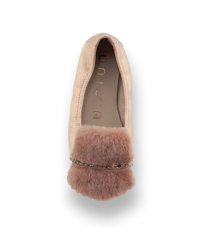 Die besonders hübschen rosefarbenen Ballerinas mit Metalliceffekt bekommen aus echtem Lammfell eine winterliche Dekoration. Strasssteinchen glitzern und der butterweiche Leder-Ballerina bringt Kinderaugen zum Leuchten. Das eingearbeitete Gummiband sorgt für einen sicheren Halt. Lederfutter und eine Lederdecksohle bieten hohen Tragekomfort und eine flexible Gummisohle ist ideal für die kleinen Füße.