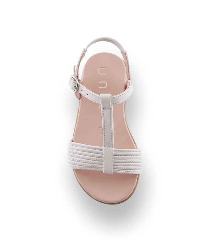 Die super süße Kindersandale von Unisa. Diese Sandale aus weißem Leder mit Stegspange bietet den notwendigen Halt im Schuh. Schmale Lederbändchen verzieren das Vorderblatt und die Ferse. Alles ist mit Leder abgefüttert, auch die Decksohle ist aus hochwertigem Leder. Für weiches und flexibles Auftreten sorgt die helle Gummisohle. Der Sommer kann kommen, mit den Kindersandalen von Unisa ist Ihre kleine Prinzessin perfekt ausgestattet.