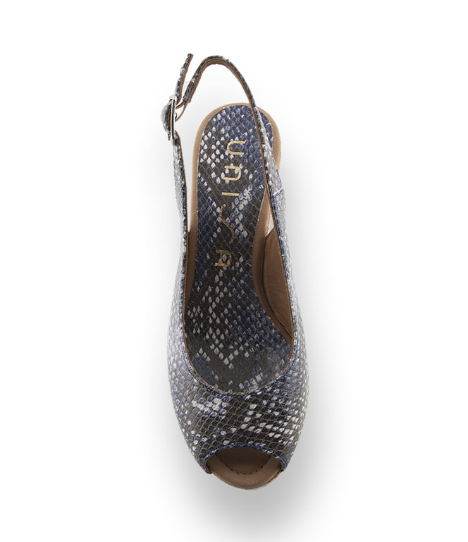 Unisa Lucero blau grau Schlangenprägung mit korkkeil