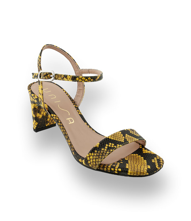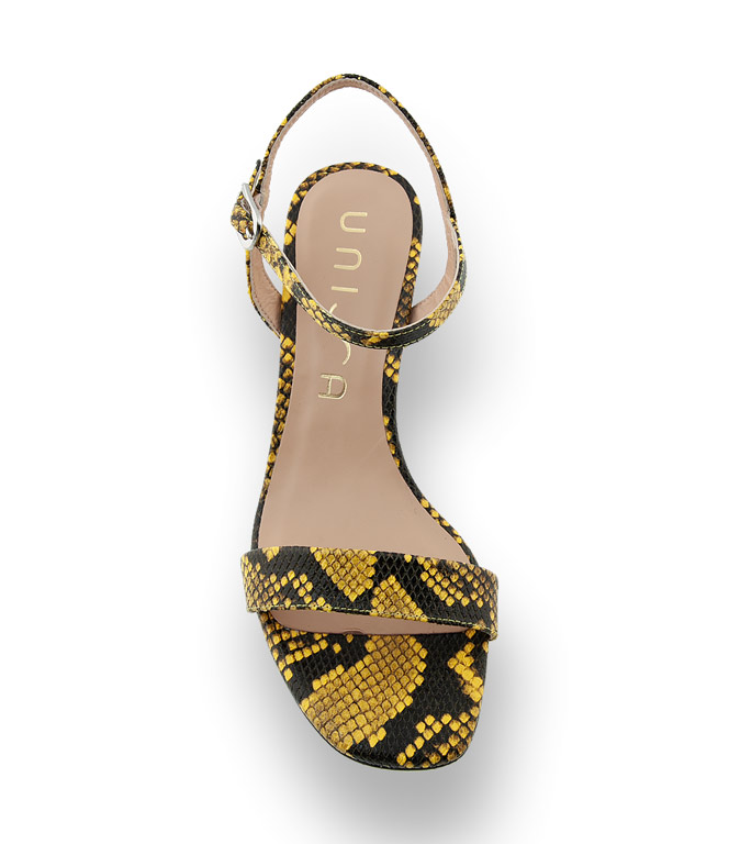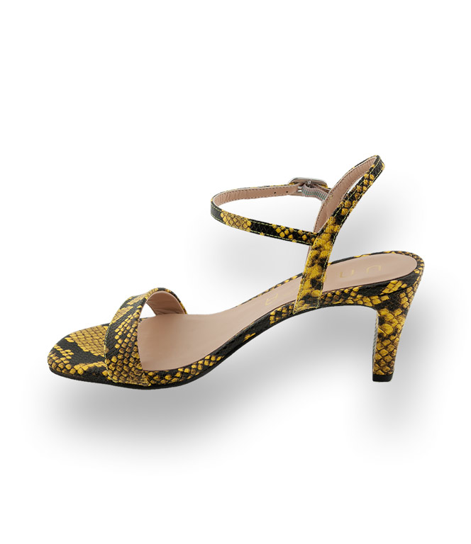 Elegante Sandalette in gelb Schlangenprägung