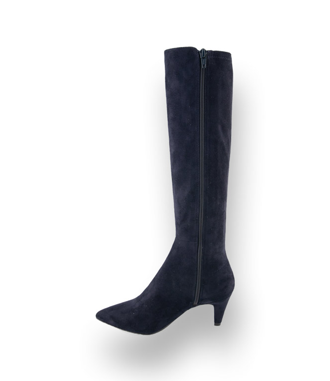 Vornehm zurückhaltend zeigt sich der Stiefel aus blauen Texmaterial von dem spanischen Label UNISA. Kniehohe Stiefel sind angesagte Kombinationspartner. Großzügig geschnittene Wollmäntel, bunte Blusenkleider, kurze Röcke und der Stiefel mit dem trichterförmigen Absatz von 7cm kommt zum Einsatz. Eine spitz zulaufende Kappe unterstreicht den femininen Style. Ein Stretchmaterial an der Wade, Lederfutter im Fußbereich und ein Reißverschluss begünstigen den Tragekomfort.