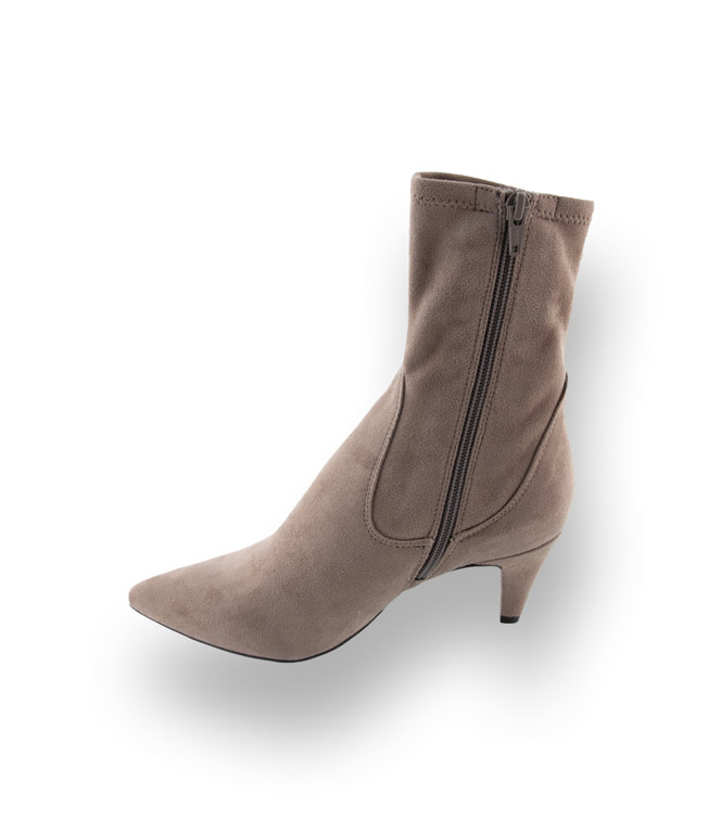 Die Stiefelette vom spanischen Label Unisa aus Stretchmaterial in Veloursoptik perfektioniert den femininen Look. Sowohl die Farbe Taupe als auch der trichterförmige 7cm hohe Absatz und der angenehme Stretchschaft mit Reißverschluss überzeugt. Ein modisches Basic-Teil kommt rund um die Uhr zum Einsatz. Eine spitz zulaufende Kappe, Lederfutter im Fußbereich und eine Gummilaufsohle erhöhen den Tragekomfort. UNISA Schuhmode aus Spanien für ihren individuellen Streetstyle