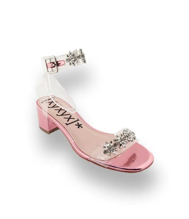 Sandale von [xyxyx]* in rosé Strass auf Vinyl