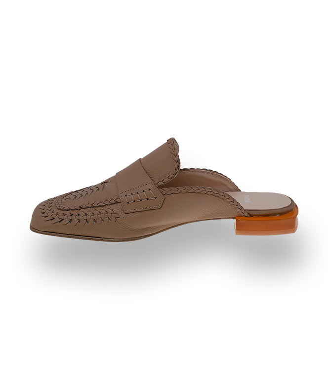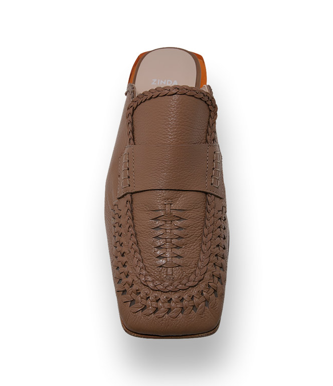 Aus feinstem braunem Leder, exclusive Flechtung und vorallem der extreme Karree. Der leicht kombinierbare Mule von Zinda wird zum besten Fashion-Invest. Zu weiten Hosen, Tunikas, Schnitte im Männerstil. Ein modisches Duo, dass sich herrlich ergänzt. Die neuen Ecken und Kanten zeigen sich auch am 2cm hohen Absatz. Lederfutter und eine Lederlaufsohle in bester Qualität unterstützen den Tragekomfort bei hochsommerlichen Temperaturen. Ein luxuriös gearbeitetes Keypiece sorgt für Lässigkeit.