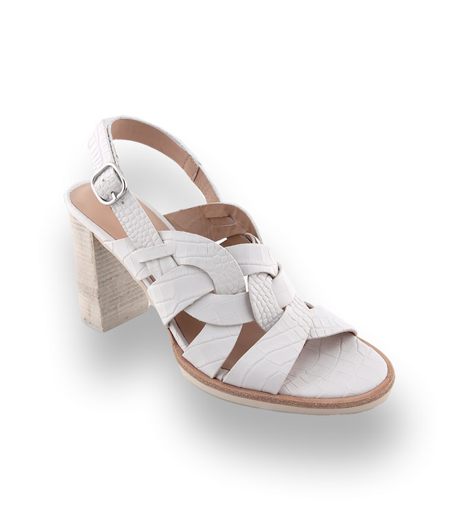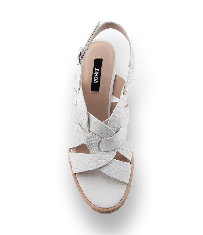 Weisse Romantikkleider aus Baumwolle mit floralen Stickereien und Rüschen haben ihren großen Auftritt. Die Sandalette von Zinda aus krokogeprägtem Kalbsleder, die durch geschickte Riemenführung einen Zopf erkennen lässt, verleiht diesem Sommeraccessoire einen bemerkenswerten modischen Effekt. Schöne Materialien in perfekter Verarbeitung zeichnen Schuhe von ZINDA aus. Eine weiche Gummilaufsohle und ein hochwertiges Lederfutter und der gebleichte Blockabsatz in Holzoptik sind hübsche Details und höchst wirkungsvoll.