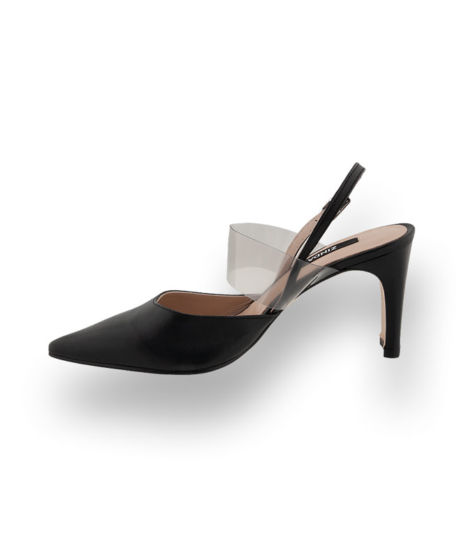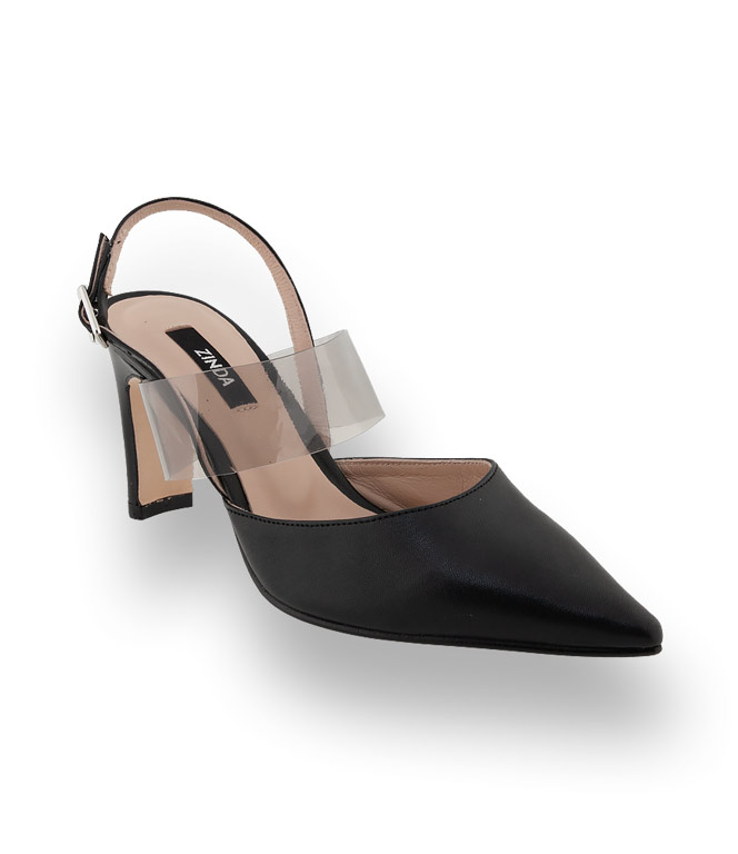Der schwarze Slingpumps von Zinda mit einer getönten Vinylbandage besticht durch Extravaganz und bietet einen perfekten Halt. Edles Ziegennappa in spitzer Form und mit hochwertigen Leder gefüttert wird der Sling zum stilvollen Begleiter sowohl für Business-Meetings als auch für die Cocktailbar. Figurbetonte Kleider, asymmetrische Ärmel und raffinierte Dekolletes ergeben faszinierende Outfits. Slingbacks gehören auf die Einkaufsliste.